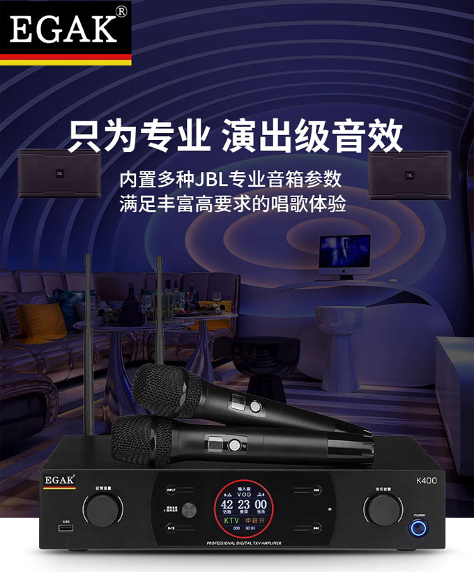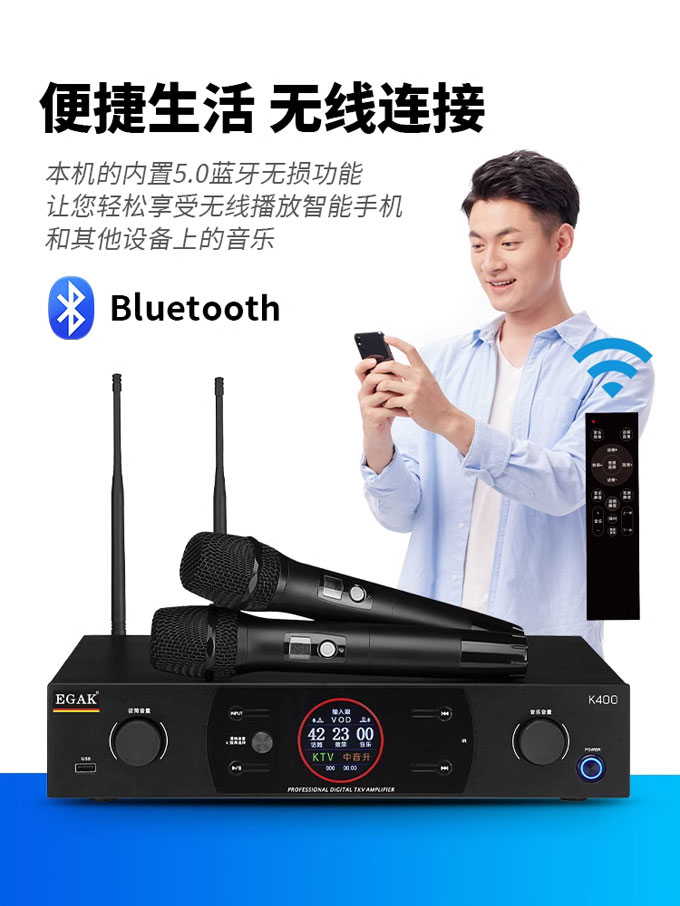2x400W 功放/效果器/话筒三合一